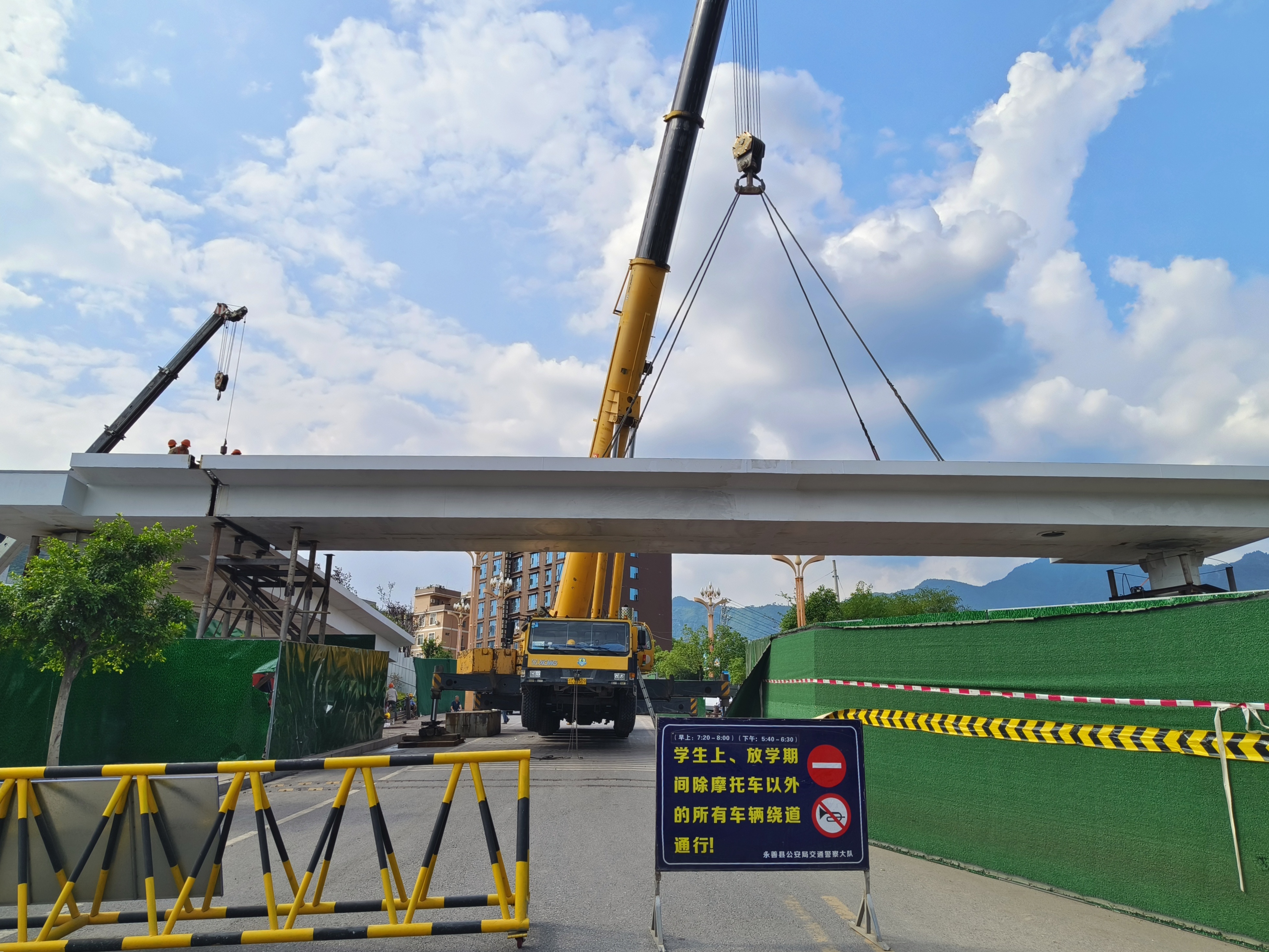 公司昭通永善縣老舊小區(qū)改造項(xiàng)目人行天橋主橋吊裝順利完成