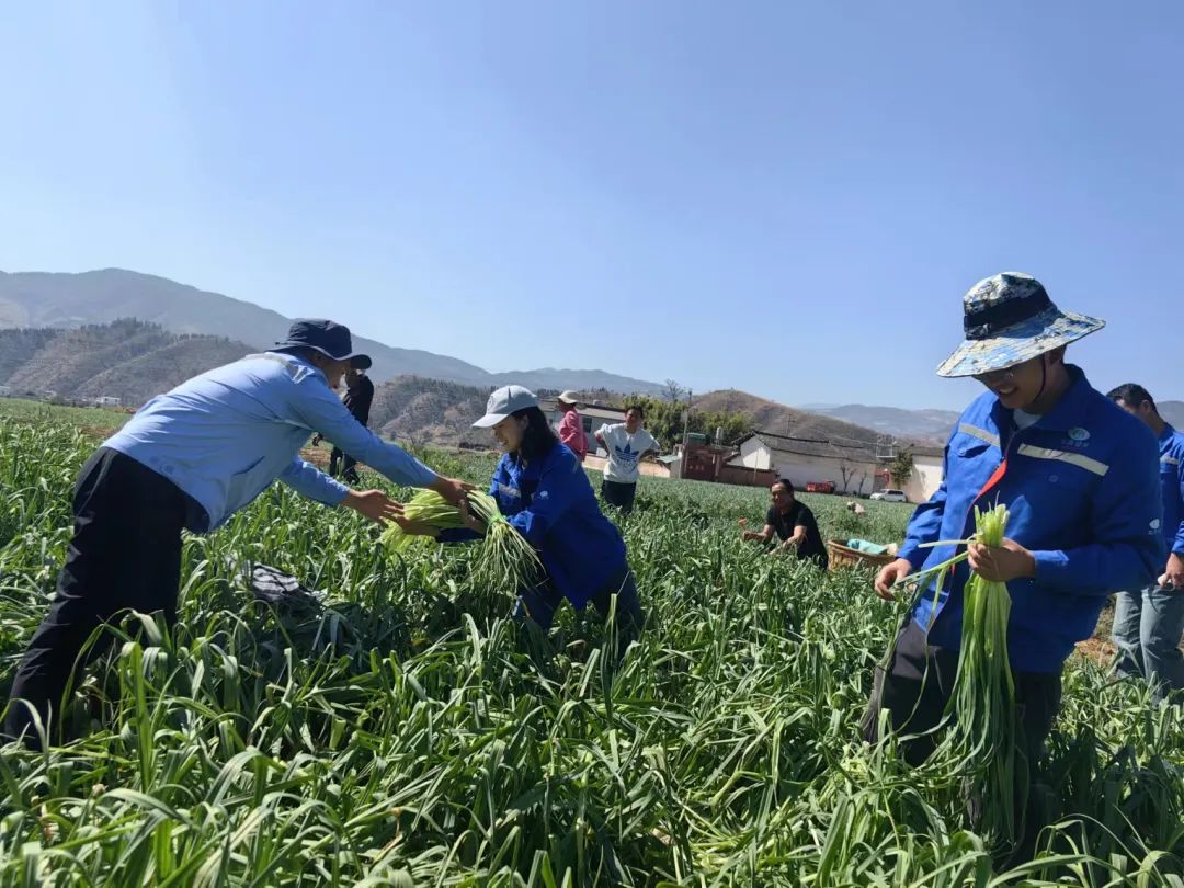 農(nóng)田里,經(jīng)驗(yàn)豐富的莊稼老把式正在細(xì)致地給團(tuán)員青年們講解蒜苗采摘方式。團(tuán)員青年們認(rèn)真領(lǐng)會采摘要領(lǐng),依次排開,相互配合著采摘、運(yùn)送、裝箱,積極展現(xiàn)青年的認(rèn)真努力和青春活力。